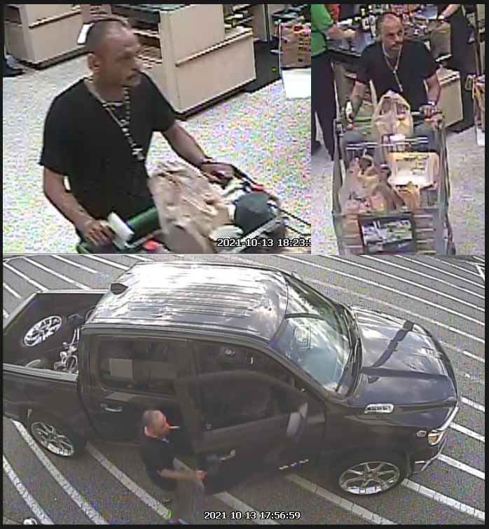 The Polk County Sheriff's Office is trying to identify the man and the truck in these photos. A detective would like to speak to the man in the photo, as well as the man who drove the black truck, to see what they know about a missing wallet investigation.