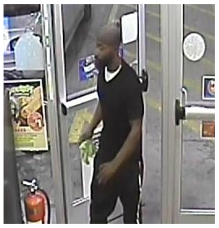The suspect is described as a black male, approximately 5’6 to 6’2 with a medium build. He left the store riding a bicycle.