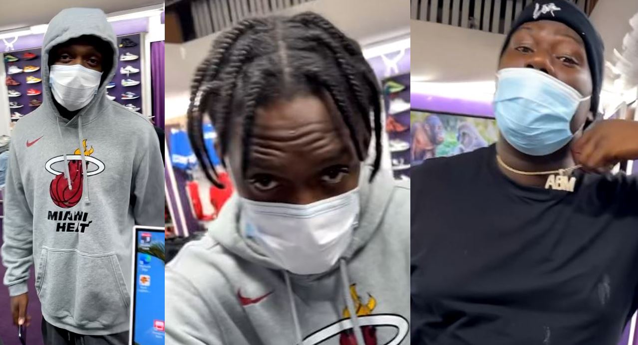 The suspect is pictured here wearing the gray Miami Heat hoodie. He is believed to be between 5’6”-5’8” and 160 pounds. He is accompanied by another man who appears to be between 5’10”-6’2” and 200-250 pounds.